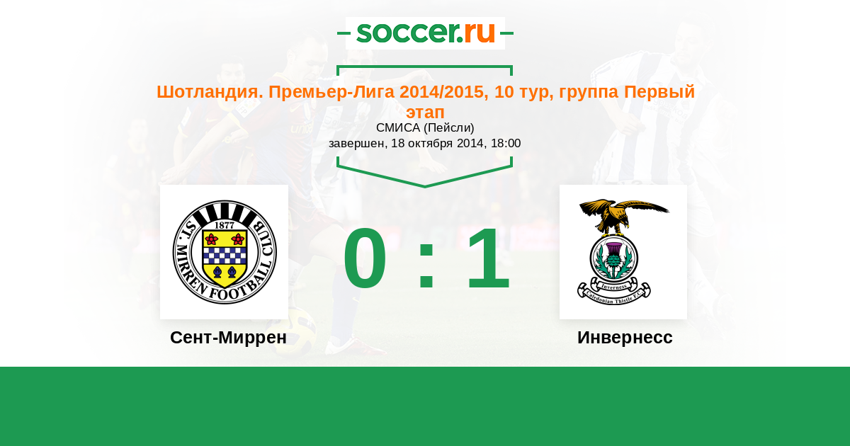 Шотландия. Премьер-Лига 25.09.2010 Сент-Миррен Логотип футбольный клуб Сент-Миррен (Пейсли) 1:2 Логотип футбольный клуб Инвернесс Инвернесс