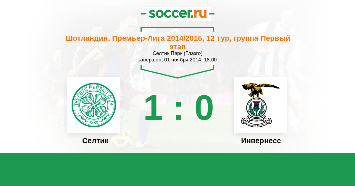 Шотландия. Премьер-Лига 24.11.2012 Селтик Логотип футбольный клуб Селтик (Глазго) 0:1 Логотип футбольный клуб Инвернесс Инвернесс