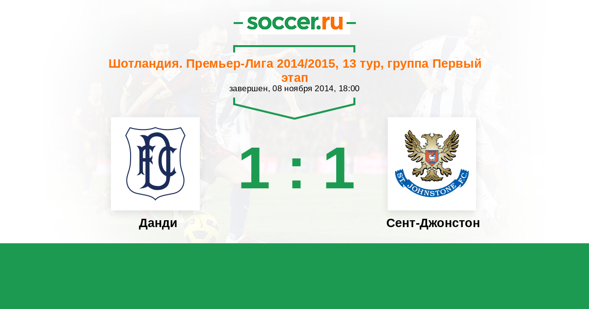 Шотландия. Премьер-Лига 13.09.2014 Сент-Джонстон Логотип футбольный клуб Сент-Джонстон (Перт) 0:1 Логотип футбольный клуб Данди Данди