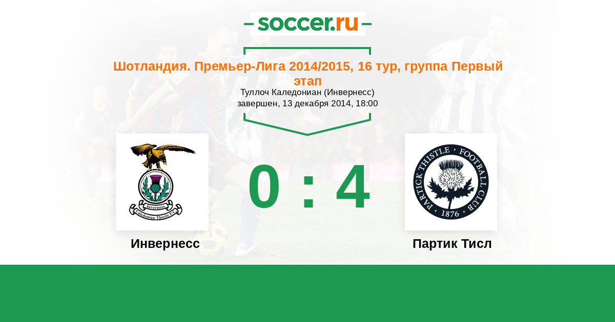 Шотландия. Премьер-Лига 22.03.2014 Инвернесс Логотип футбольный клуб Инвернесс 1:0 Логотип футбольный клуб Партик Тисл (Глазго) Партик Тисл