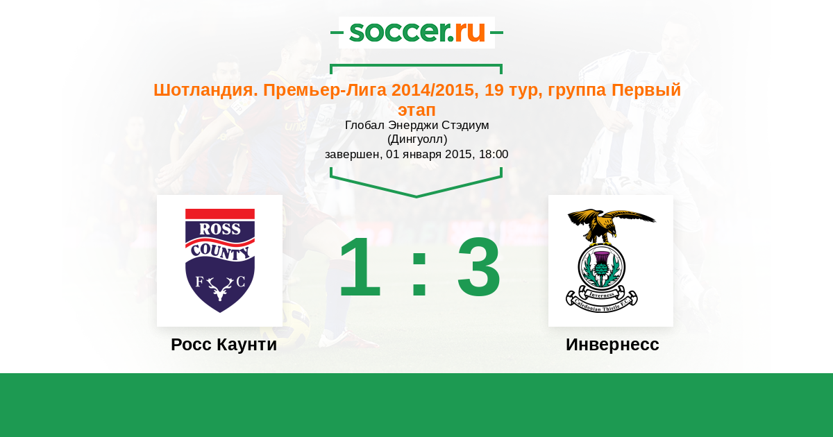 Шотландия. Премьер-Лига 01.01.2014 Инвернесс Логотип футбольный клуб Инвернесс 1:2 Логотип футбольный клуб Росс Каунти (Дингволл) Росс Каунти