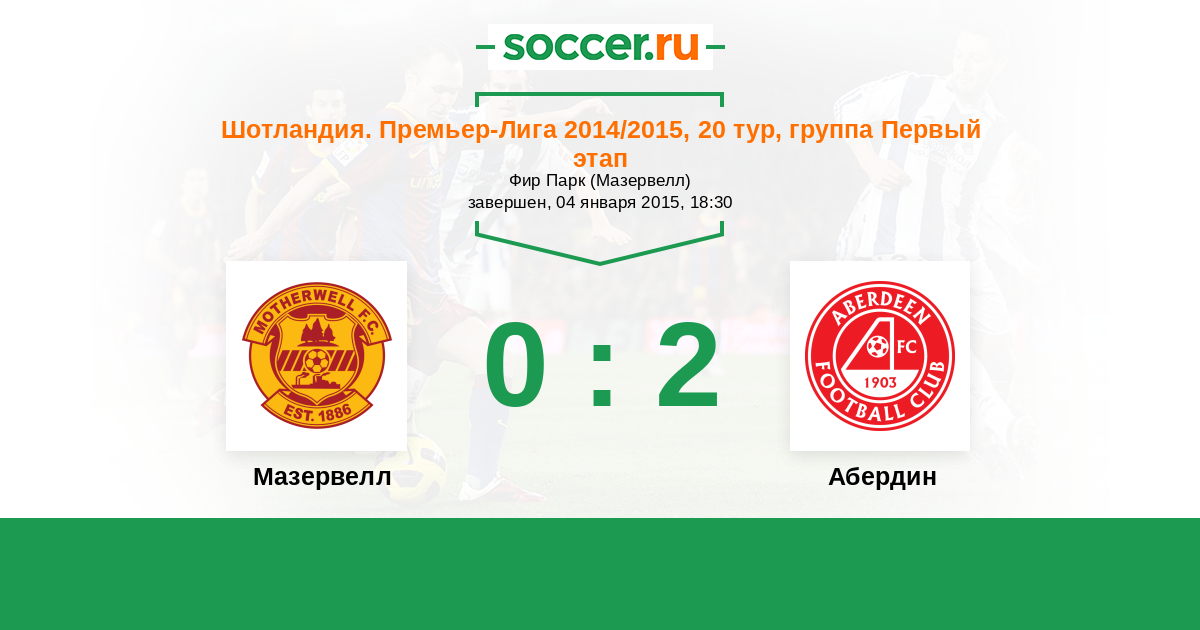 Шотландия. Премьер-Лига 13.03.2015 Абердин Логотип футбольный клуб Абердин 2:1 Логотип футбольный клуб Мазервелл Мазервелл