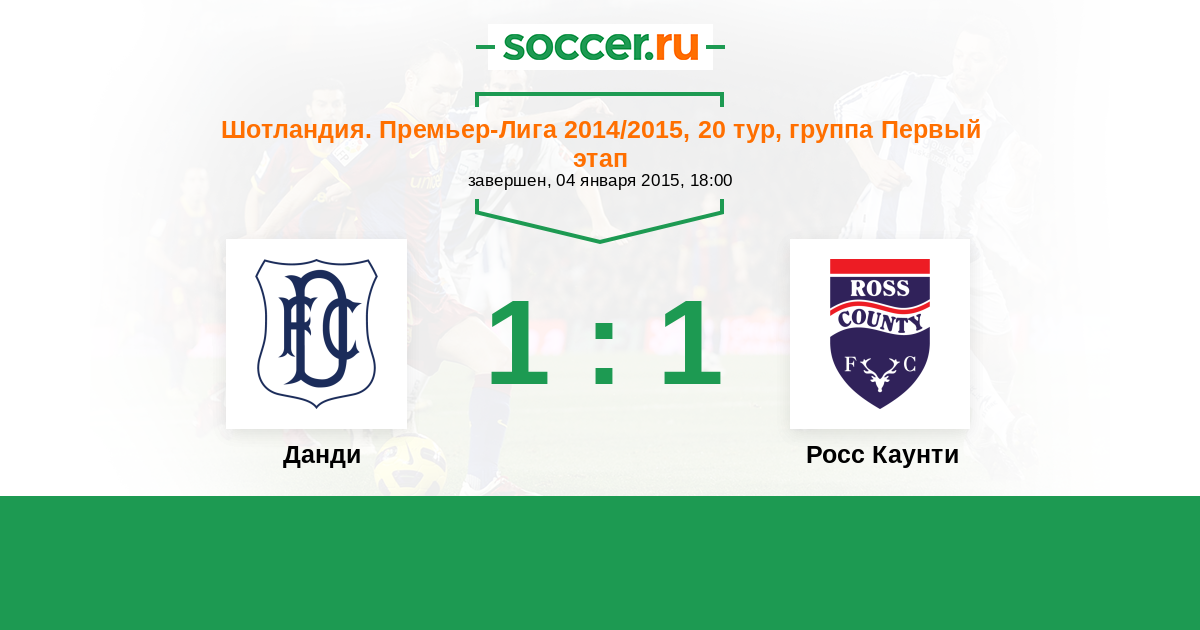 Шотландия. Премьер-Лига 26.12.2015 Росс Каунти Логотип футбольный клуб Росс Каунти (Дингволл) 5:2 Логотип футбольный клуб Данди Данди