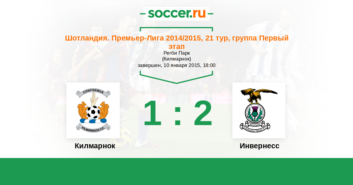 Шотландия. Премьер-Лига 25.01.2014 Килмарнок Логотип футбольный клуб Килмарнок 2:0 Логотип футбольный клуб Инвернесс Инвернесс