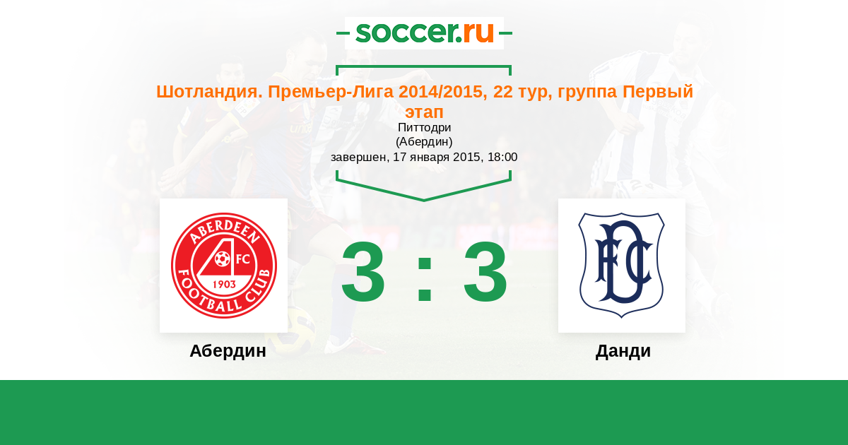 Шотландия. Премьер-Лига 21.03.2015 Данди Логотип футбольный клуб Данди 1:1 Логотип футбольный клуб Абердин Абердин