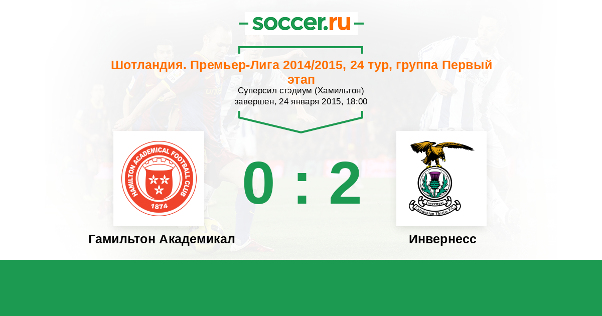 Шотландия. Премьер-Лига 22.08.2015 Инвернесс Логотип футбольный клуб Инвернесс 0:2 Логотип футбольный клуб Гамильтон Академикал Гамильтон Академикал