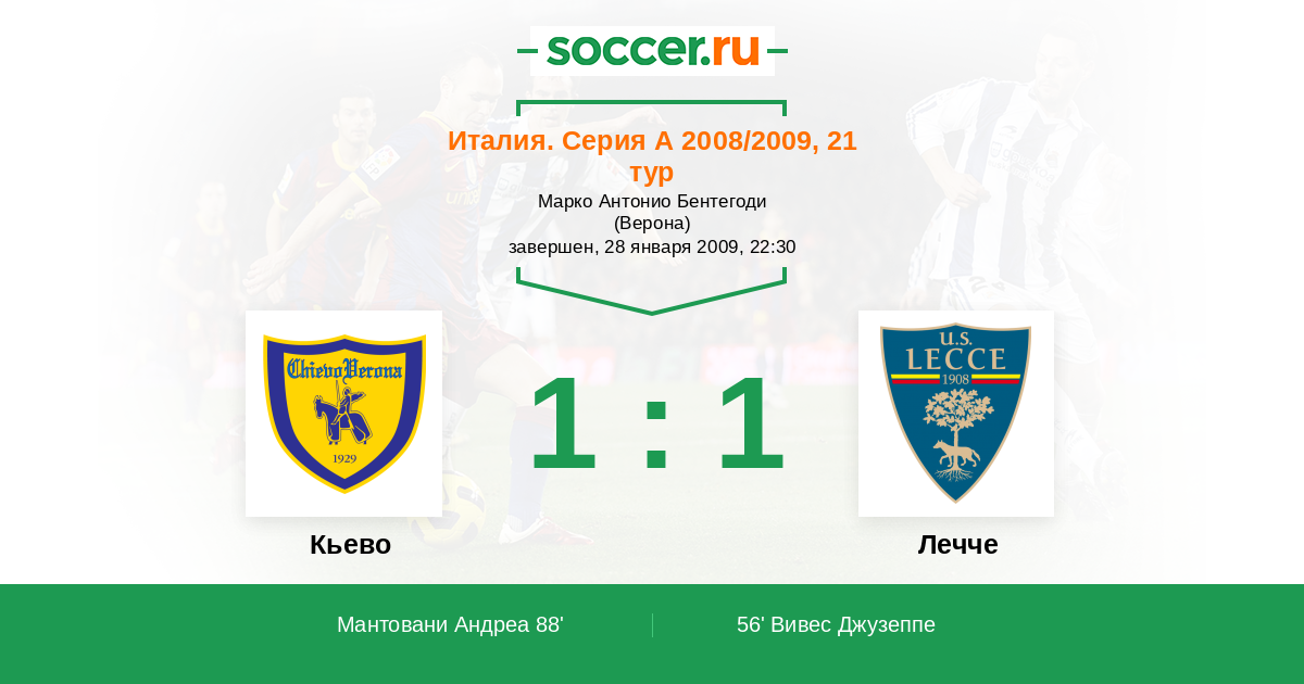 Протокол матча Кьево против Лечче