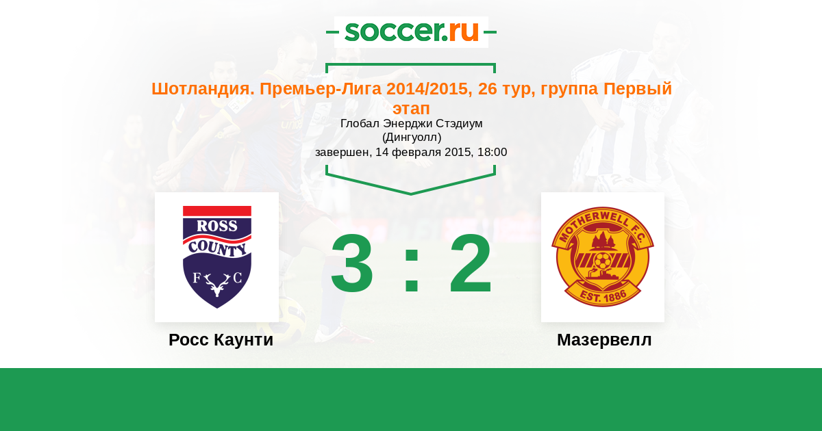 Шотландия. Премьер-Лига 13.12.2014 Мазервелл Логотип футбольный клуб Мазервелл 2:2 Логотип футбольный клуб Росс Каунти (Дингволл) Росс Каунти