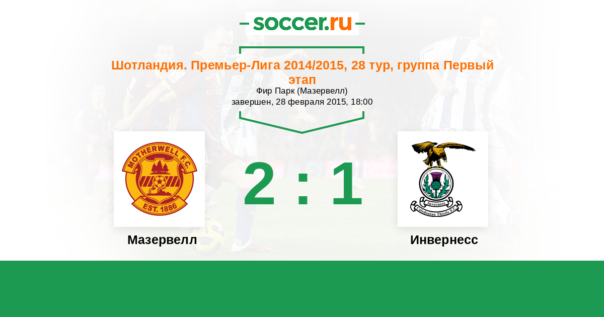 Шотландия. Премьер-Лига 19.03.2014 Мазервелл Логотип футбольный клуб Мазервелл 2:0 Логотип футбольный клуб Инвернесс Инвернесс