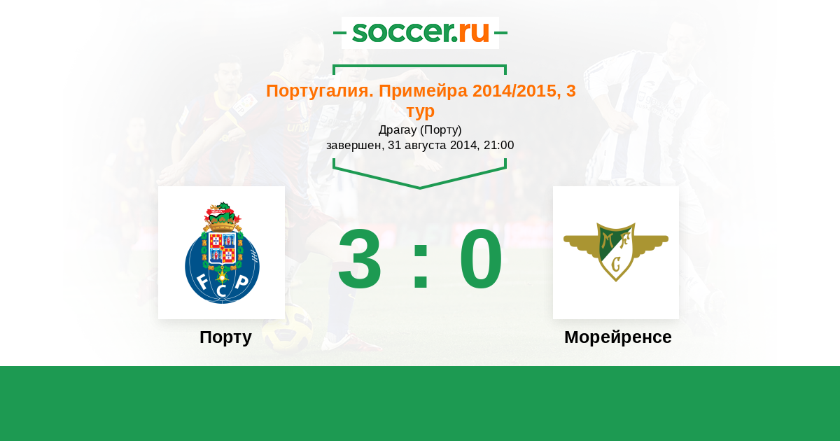 Португалия. Примейра 02.09.2018 Порту Логотип футбольный клуб Порту 3:0 Логотип футбольный клуб Морейренcе (Морейра-де-Конегуш) Морейренcе