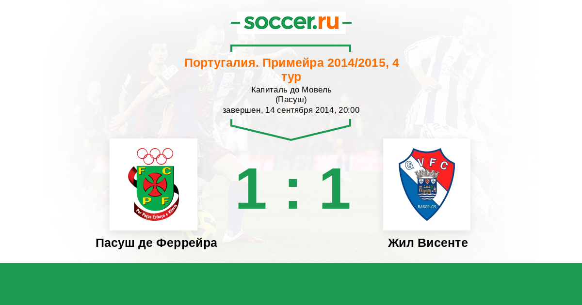 Португалия. Примейра 09.03.2014 Пасуш де Феррейра Логотип футбольный клуб Пасуш де Феррейра 0:2 Логотип футбольный клуб Жил Висенте (Барселуш) Жил Висенте