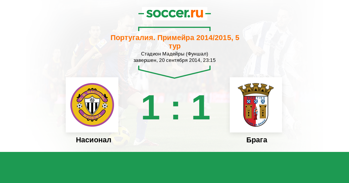 Португалия. Примейра 06.10.2013 Насионал Логотип футбольный клуб Насионал (Фуншал) 3:0 Логотип футбольный клуб Брага Брага