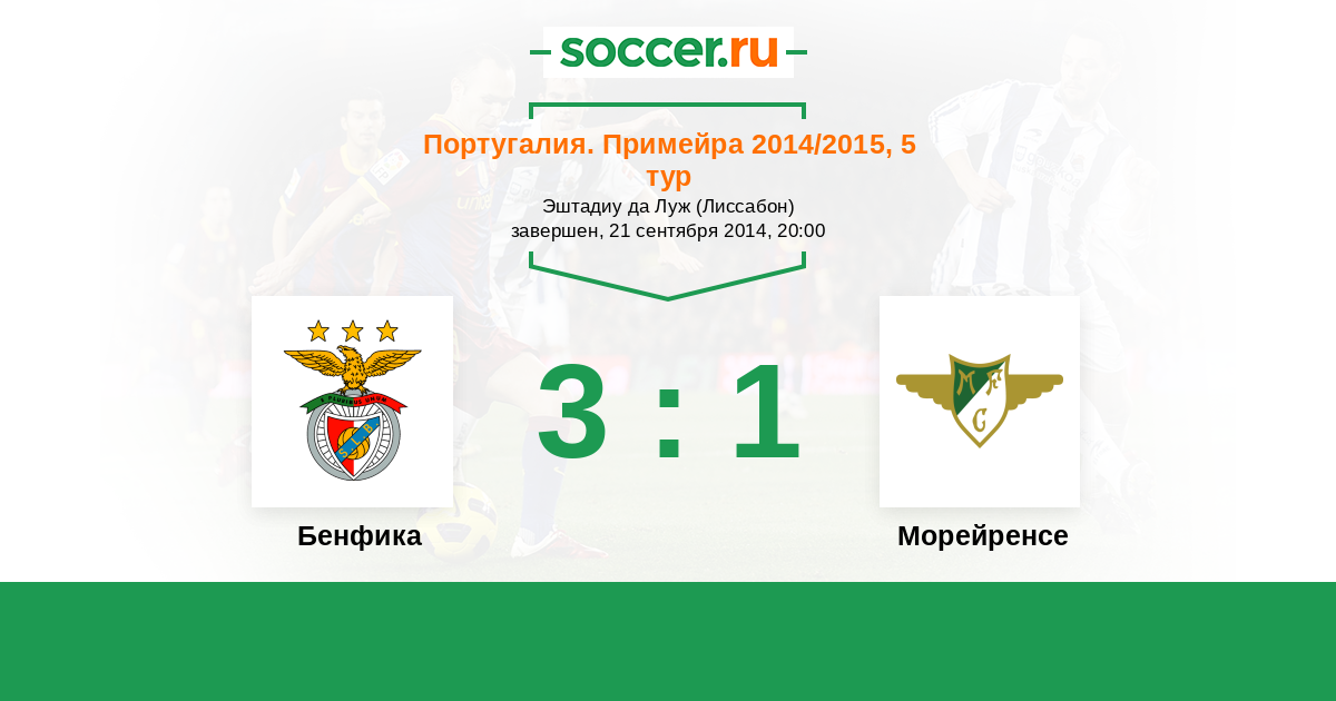 Португалия. Примейра 29.08.2015 Бенфика Логотип футбольный клуб Бенфика (Лиссабон) 3:2 Логотип футбольный клуб Морейренcе (Морейра-де-Конегуш) Морейренcе