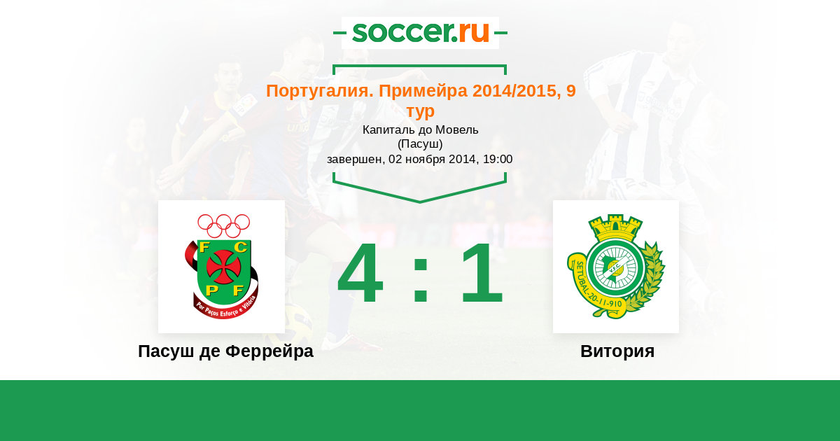 Португалия. Примейра 23.09.2013 Пасуш де Феррейра Логотип футбольный клуб Пасуш де Феррейра 1:1 Логотип футбольный клуб Витория (Сетубал) Витория