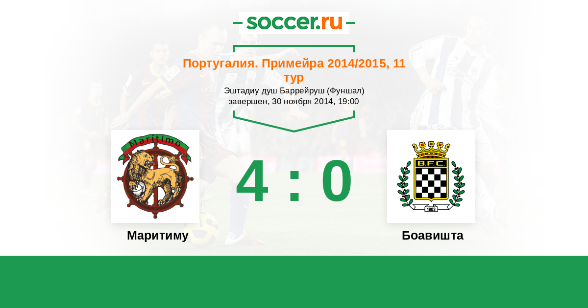 Португалия. Примейра 01.11.2015 Боавишта Логотип футбольный клуб Боавишта (Порту) 0:1 Логотип футбольный клуб Маритиму (Фуншал) Маритиму