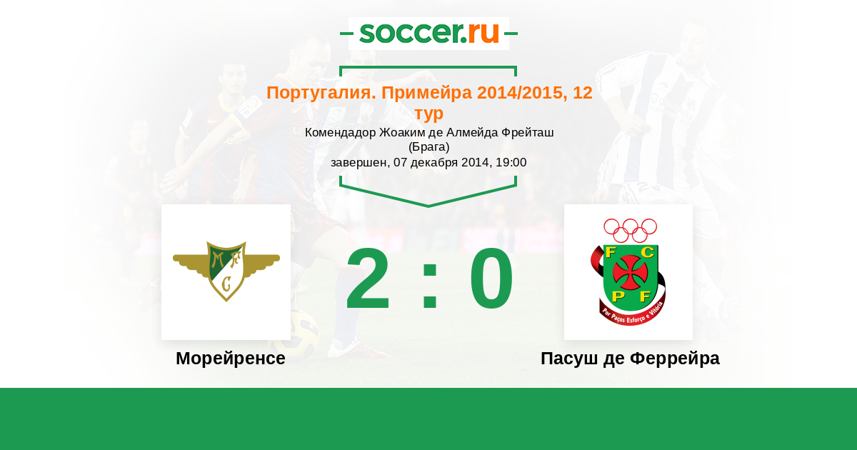 Португалия. Примейра 19.04.2015 Пасуш де Феррейра Логотип футбольный клуб Пасуш де Феррейра 0:0 Логотип футбольный клуб Морейренcе (Морейра-де-Конегуш) Морейренcе