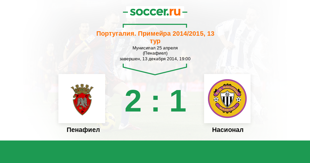 Португалия. Примейра 26.04.2015 Насионал Логотип футбольный клуб Насионал (Фуншал) 2:0 Логотип футбольный клуб Пенафиел Пенафиел