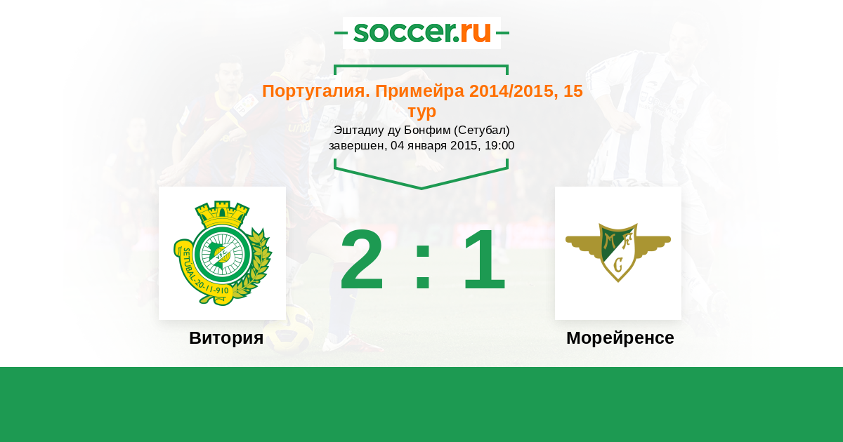 Португалия. Примейра 13.01.2013 Витория Логотип футбольный клуб Витория (Сетубал) 5:0 Логотип футбольный клуб Морейренcе (Морейра-де-Конегуш) Морейренcе