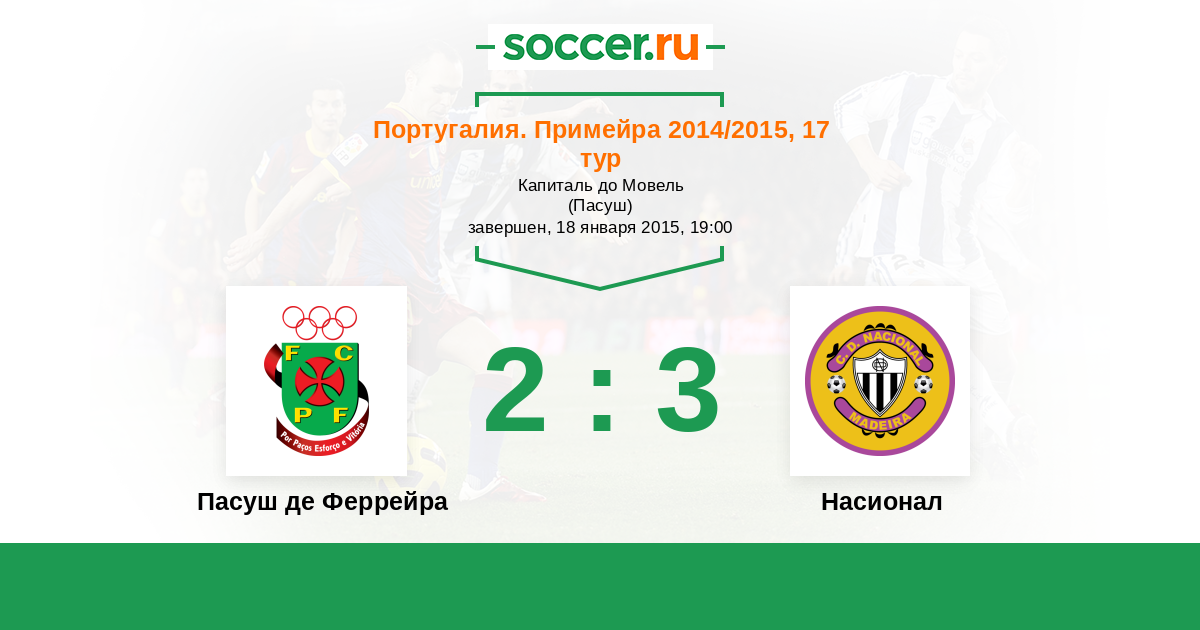 Португалия. Примейра 19.04.2014 Пасуш де Феррейра Логотип футбольный клуб Пасуш де Феррейра 0:5 Логотип футбольный клуб Насионал (Фуншал) Насионал