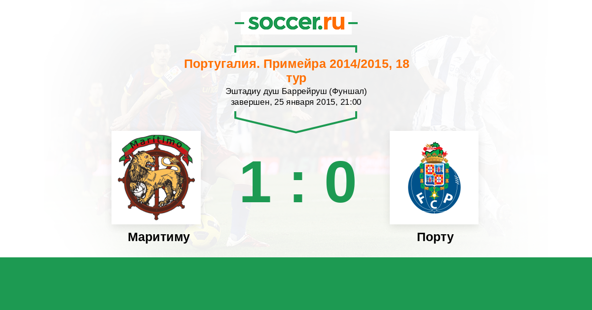 Португалия. Примейра 01.02.2014 Маритиму Логотип футбольный клуб Маритиму (Фуншал) 1:0 Логотип футбольный клуб Порту Порту