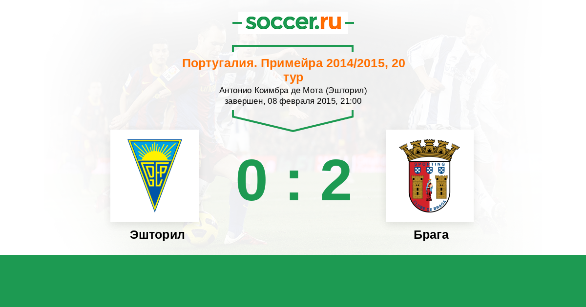 Португалия. Примейра 17.02.2014 Эшторил Логотип футбольный клуб Эшторил 2:1 Логотип футбольный клуб Брага Брага