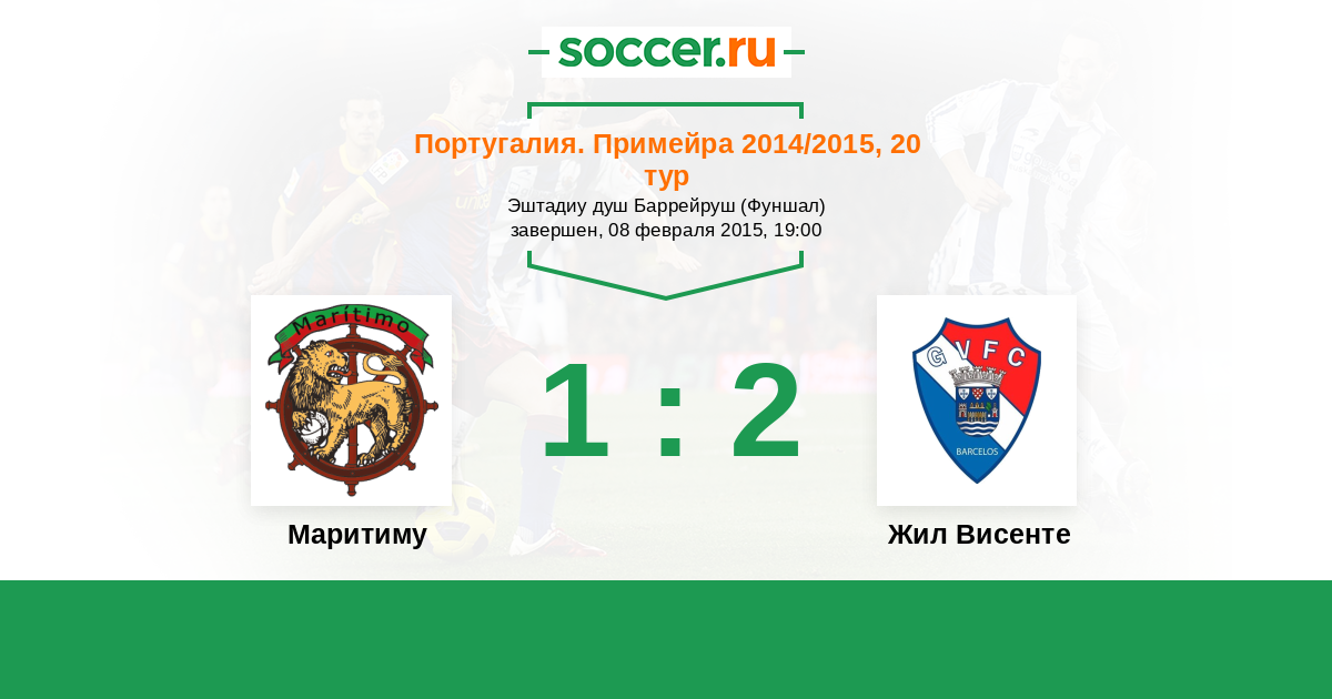 Португалия. Примейра 26.03.2012 Маритиму Логотип футбольный клуб Маритиму (Фуншал) 3:2 Логотип футбольный клуб Жил Висенте (Барселуш) Жил Висенте