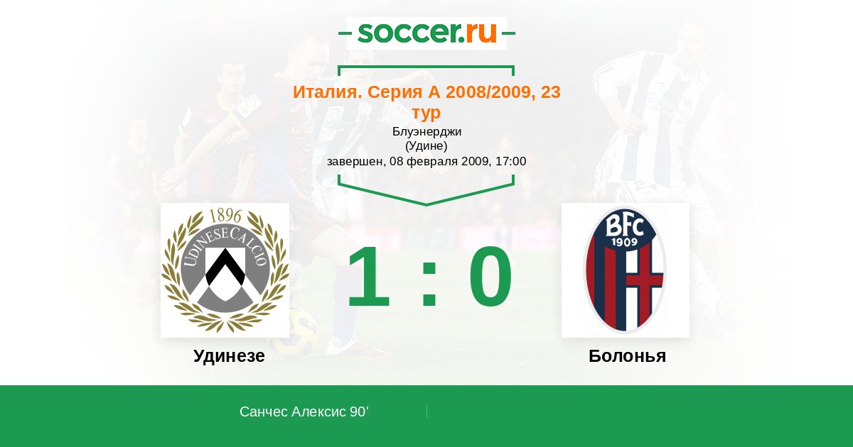 Протокол матча Удинезе против Болонья