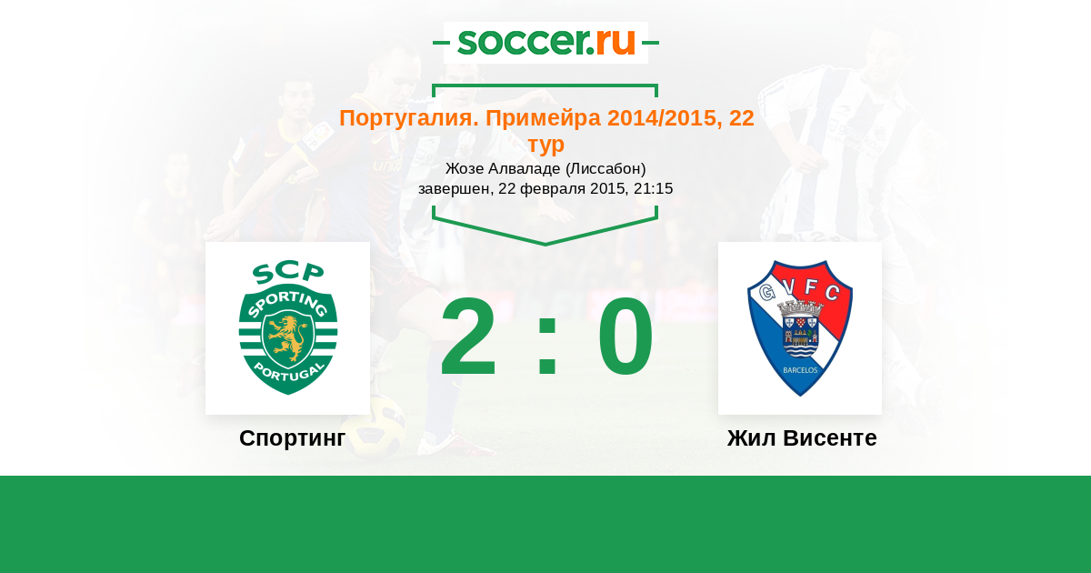 Португалия. Примейра 21.09.2014 Жил Висенте Логотип футбольный клуб Жил Висенте (Барселуш) 0:4 Логотип футбольный клуб Спортинг (Лиссабон) Спортинг