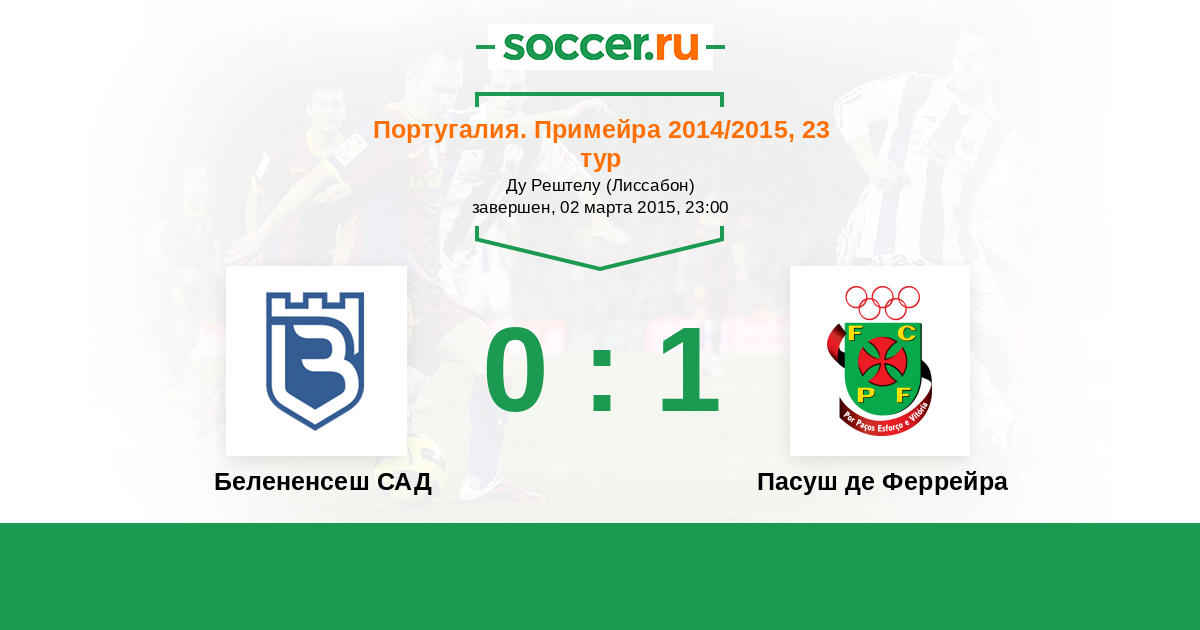 Португалия. Примейра 29.09.2014 Пасуш де Феррейра Логотип футбольный клуб Пасуш де Феррейра 2:0 Логотип футбольный клуб Белененсеш САД (Лиссабон) Белененсеш САД
