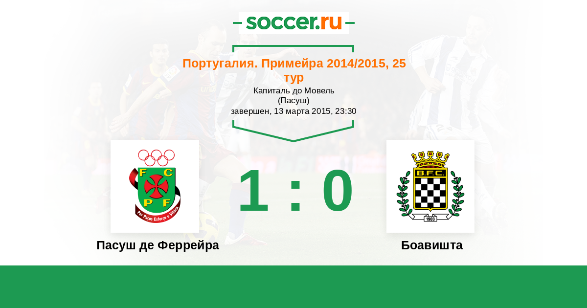Португалия. Примейра 25.10.2014 Боавишта Логотип футбольный клуб Боавишта (Порту) 1:2 Логотип футбольный клуб Пасуш де Феррейра Пасуш де Феррейра
