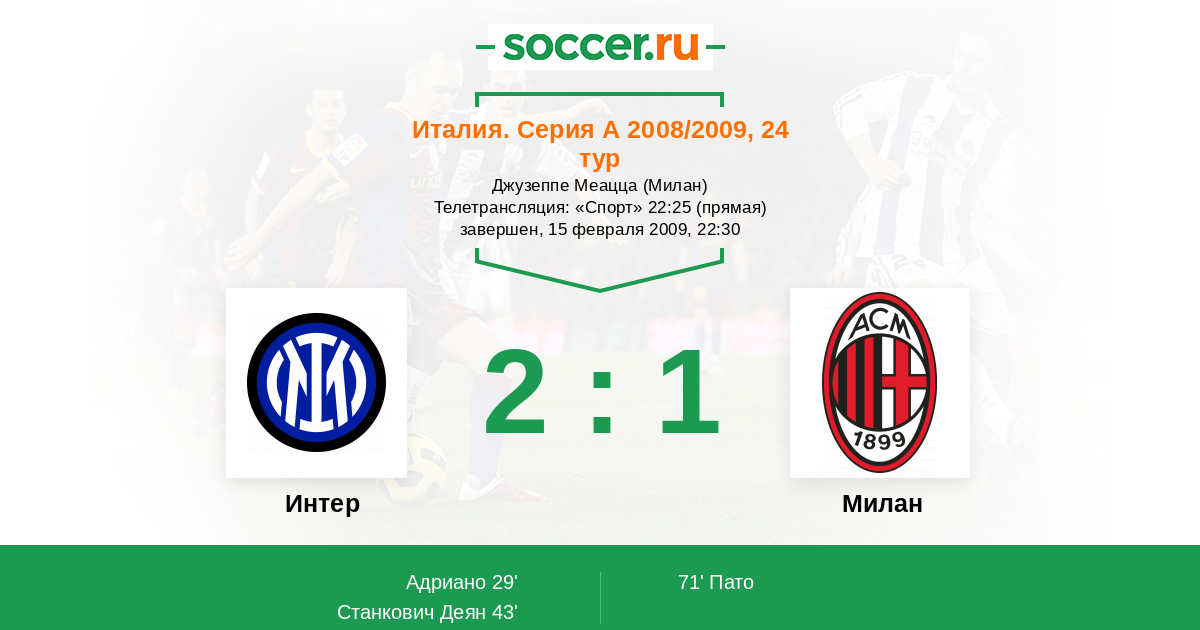 Протокол матча Интер против Милан