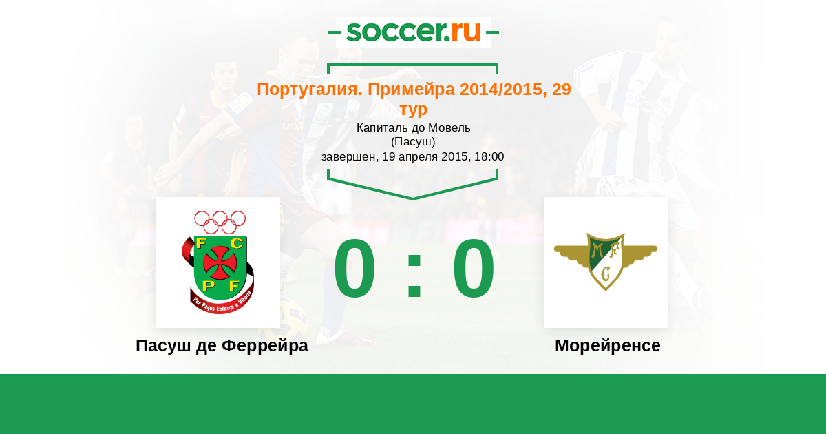 Португалия. Примейра 20.03.2016 Пасуш де Феррейра Логотип футбольный клуб Пасуш де Феррейра 0:0 Логотип футбольный клуб Морейренcе (Морейра-де-Конегуш) Морейренcе