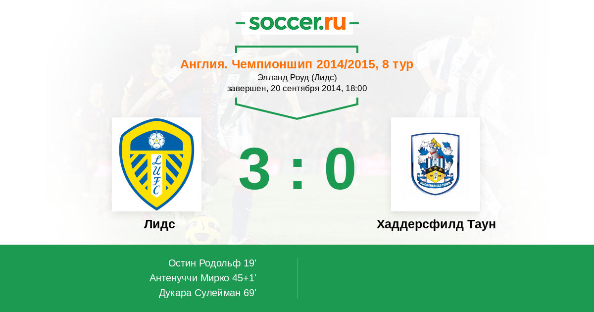 Протокол матча Лидс против Хаддерсфилд Таун