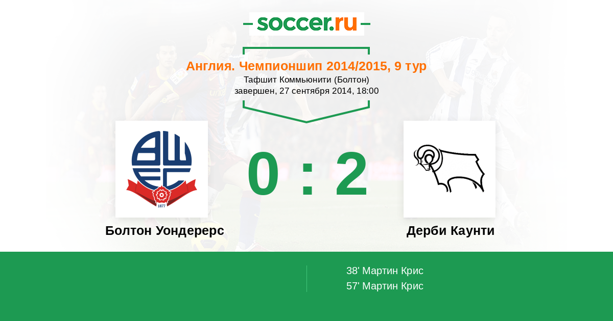 Протокол матча Болтон Уондерерс против Дерби Каунти