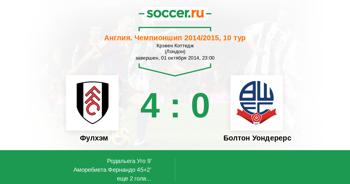 Протокол матча Фулхэм против Болтон Уондерерс