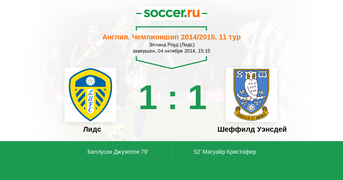 Протокол матча Лидс против Шеффилд Уэнсдей