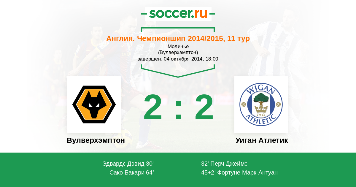 Протокол матча Вулверхэмптон против Уиган Атлетик