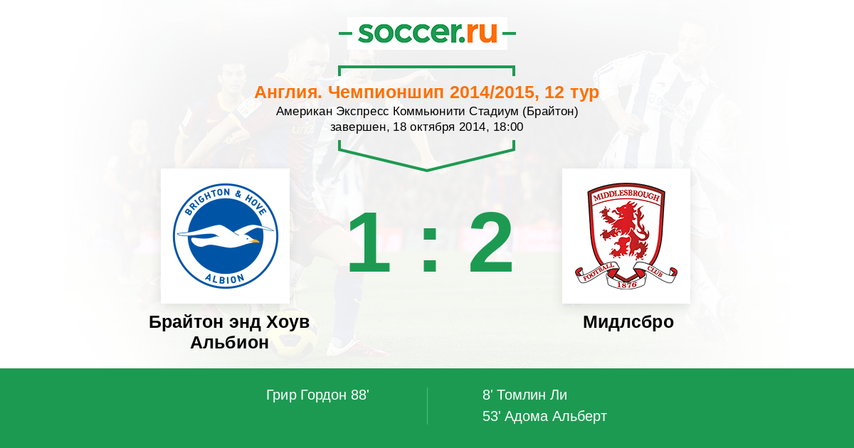Протокол матча Брайтон энд Хоув Альбион против Мидлсбро