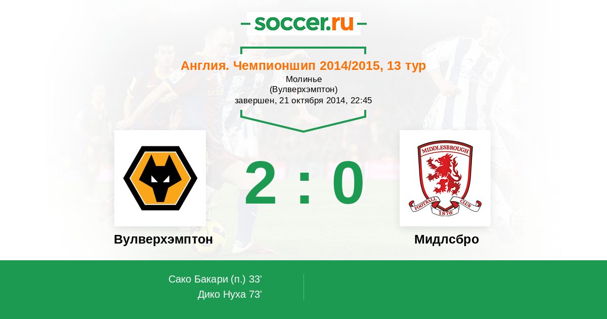 Протокол матча Вулверхэмптон против Мидлсбро