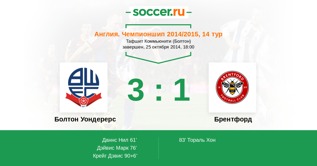 Протокол матча Болтон Уондерерс против Брентфорд