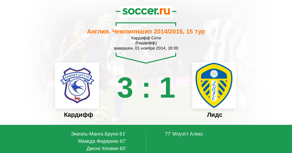 61' (1:0) Экюэль-Манга Бруно (5) (Шон Моррисон (36))