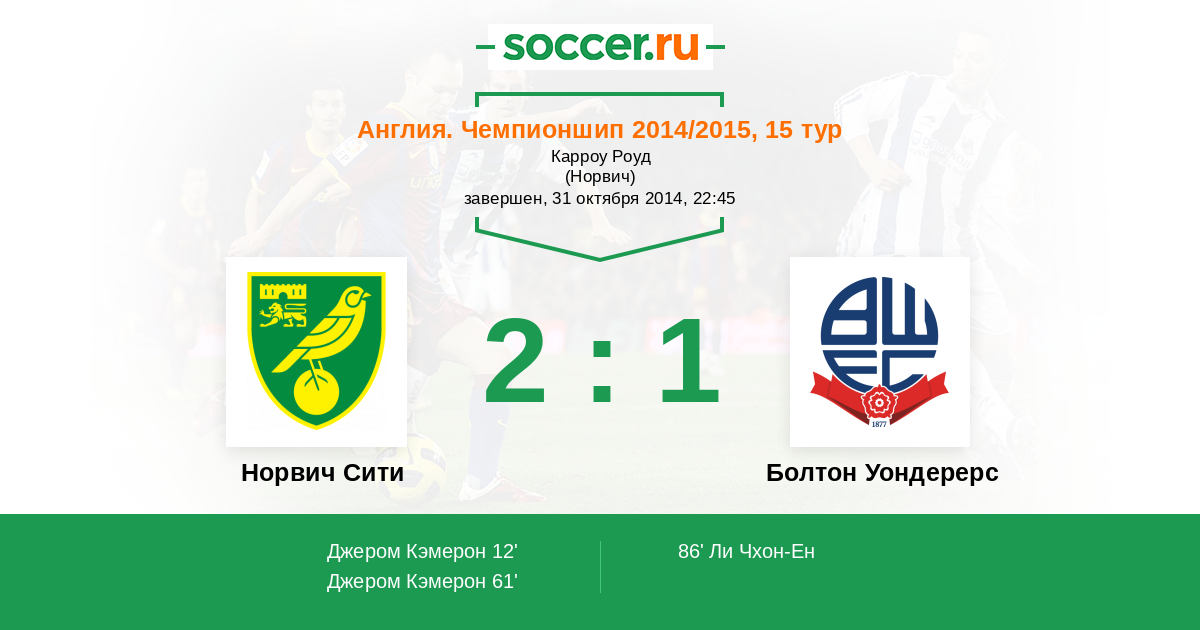 Протокол матча Норвич Сити против Болтон Уондерерс