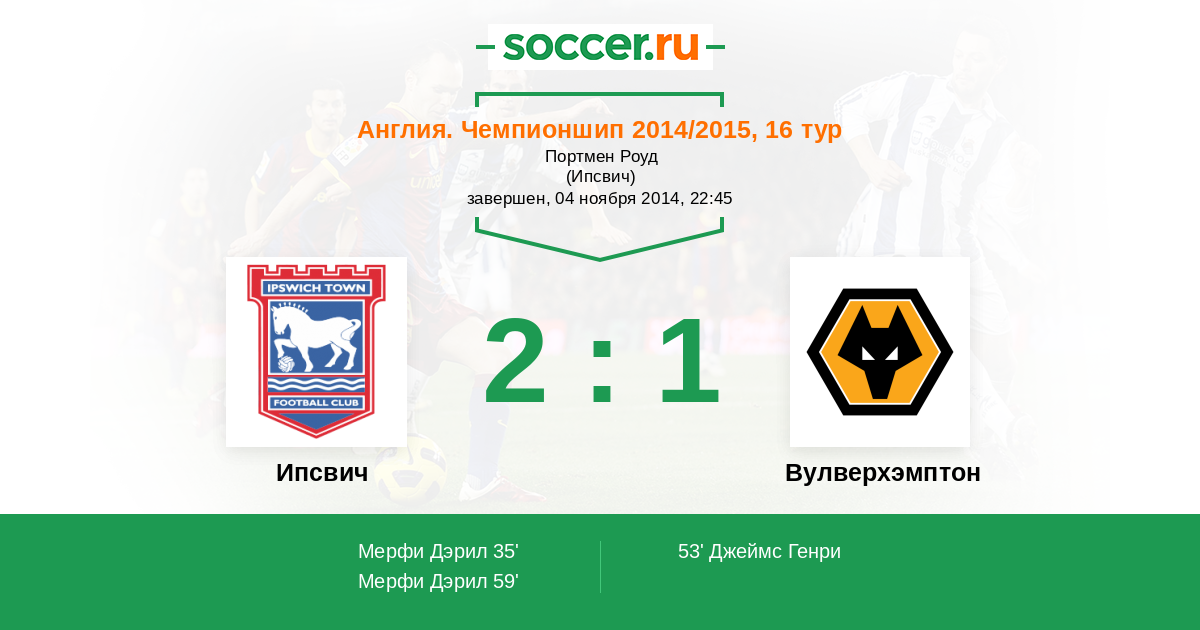 Протокол матча Ипсвич против Вулверхэмптон