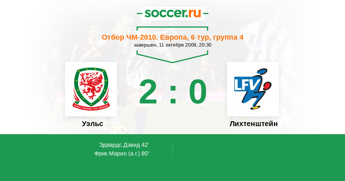 Протокол матча Уэльс против Лихтенштейн