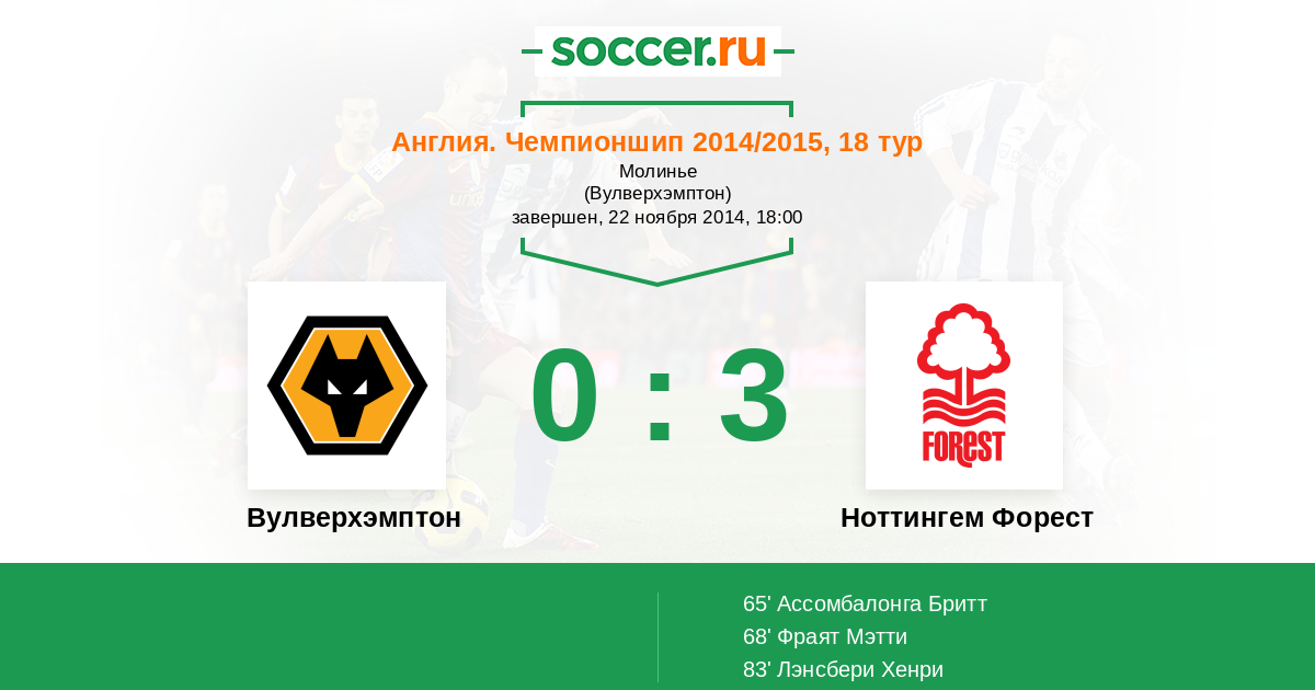 Протокол матча Вулверхэмптон против Ноттингем Форест