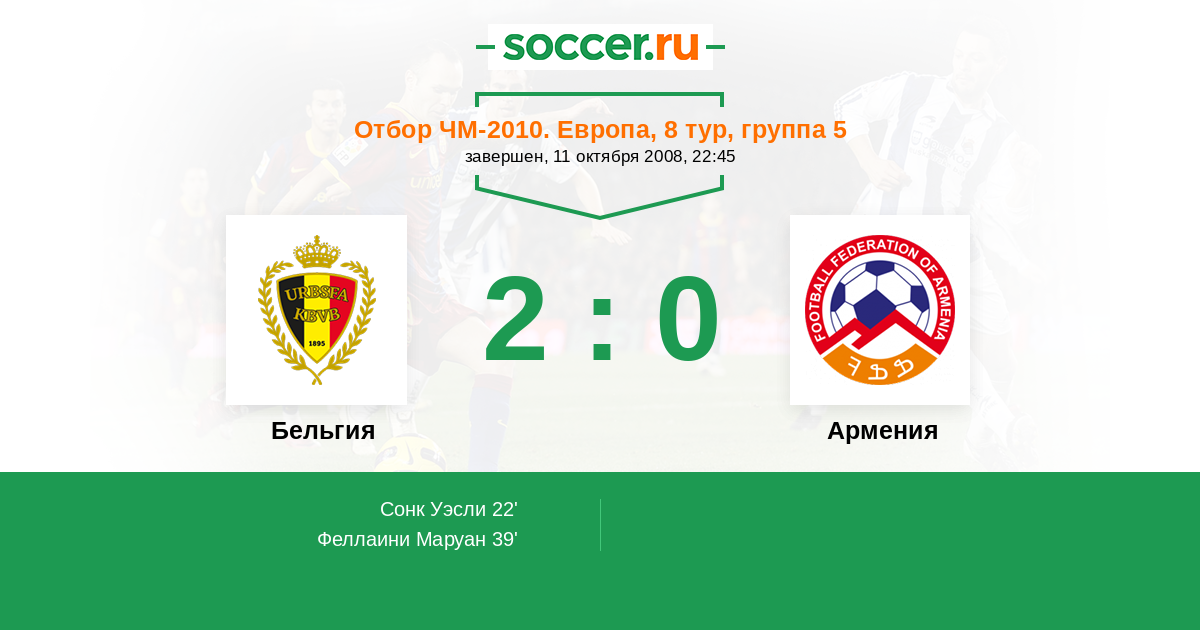 Протокол матча Бельгия против Армения