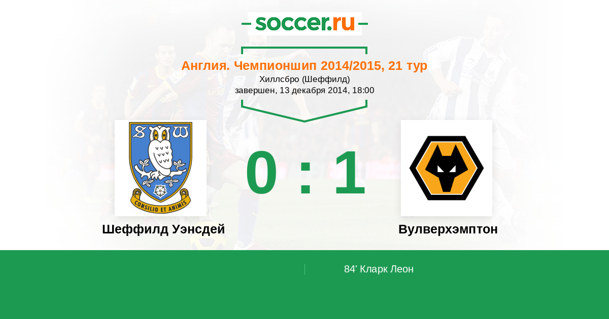Протокол матча Шеффилд Уэнсдей против Вулверхэмптон