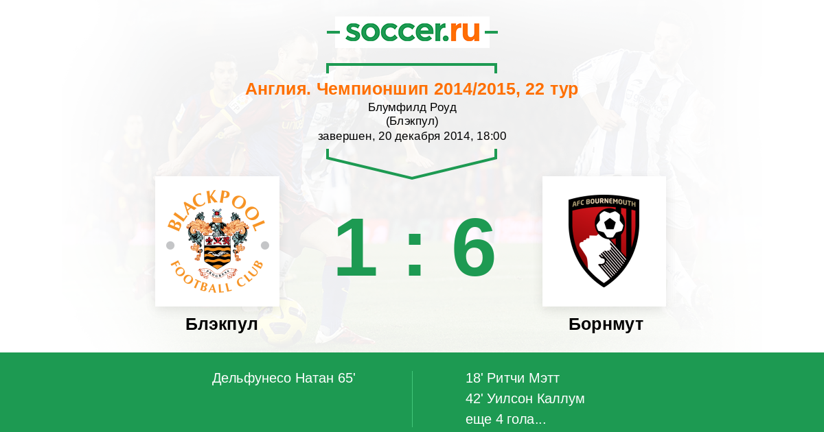 Протокол матча Блэкпул против Борнмут
