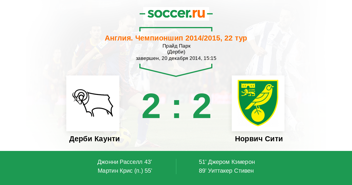 Протокол матча Дерби Каунти против Норвич Сити