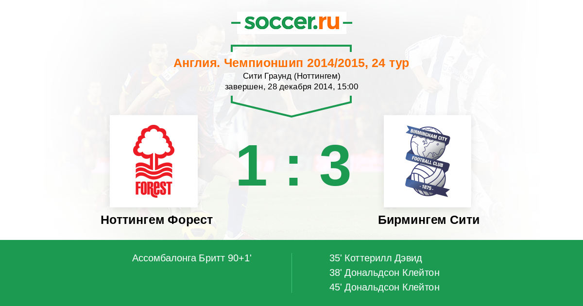 Протокол матча Ноттингем Форест против Бирмингем Сити